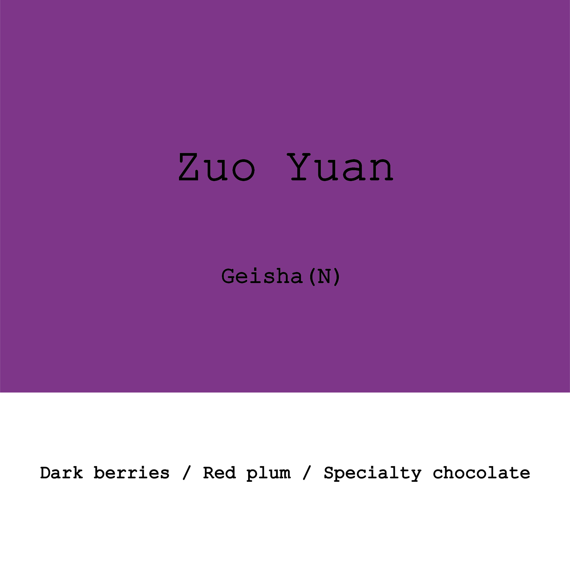 Origin: China Region: Yunnan, Baoshan Farm: Zuoyuan Station: Manglong Base Altitude: 1300–1450 masl Variety: Geisha Crop: Picked in Jan.~ Mar.2025/Arrived in Oct. 2025 Process: Natural |