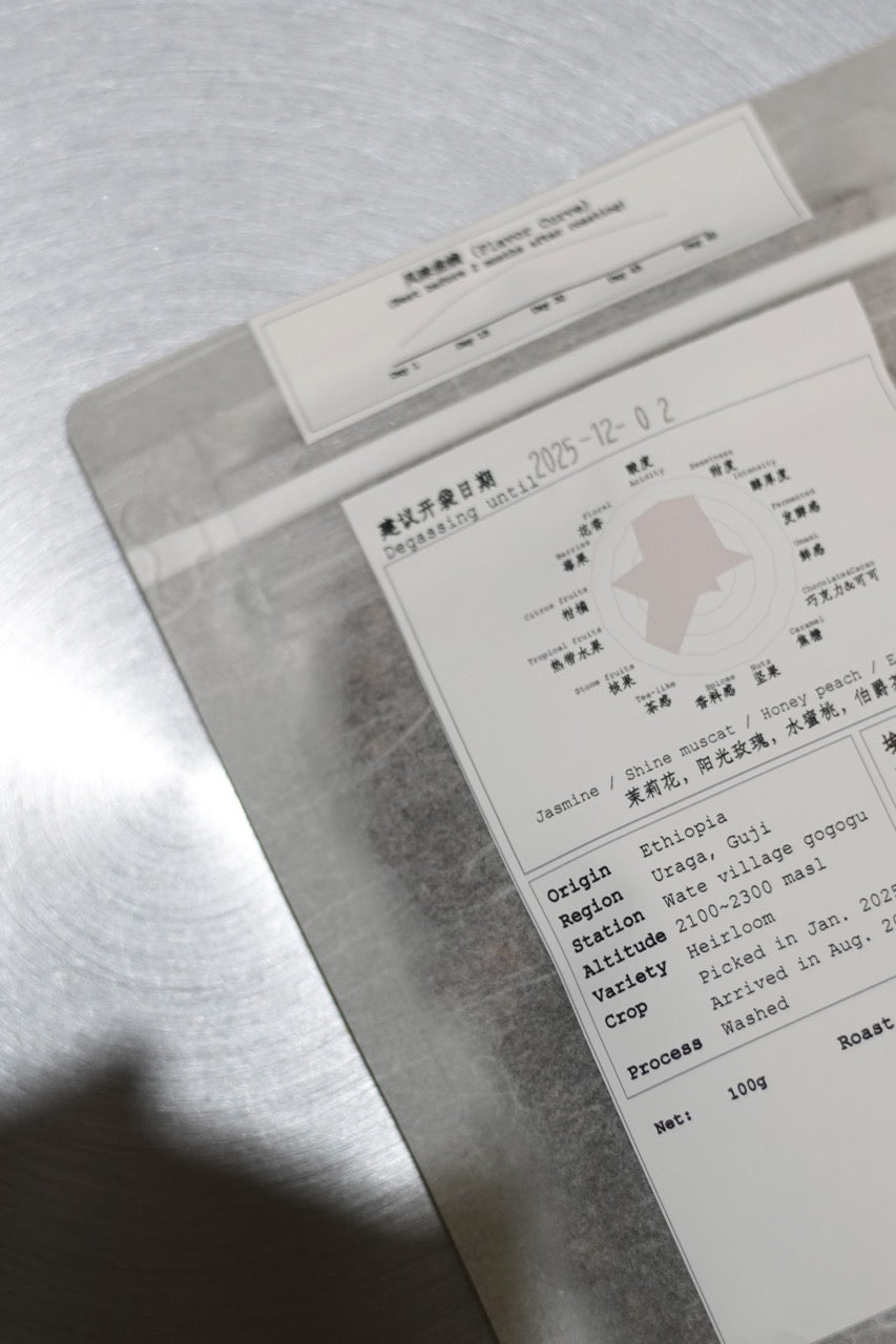 Origin: Ethiopia Region: Uraga, Guji Station: Wate village gogogu Altitude: 2100~2300 masl Variety: Heirloom Crop: Picked in Jan 2025 /Arrived in Aug. 2025 Process: Washed |